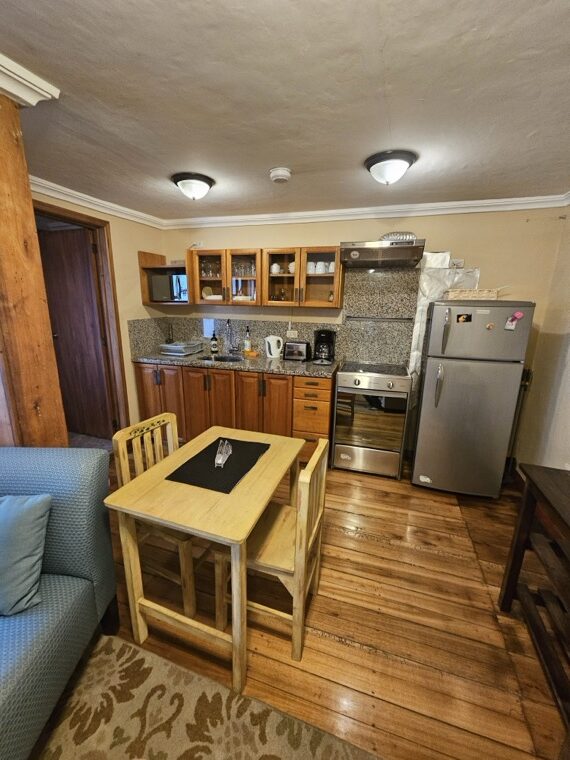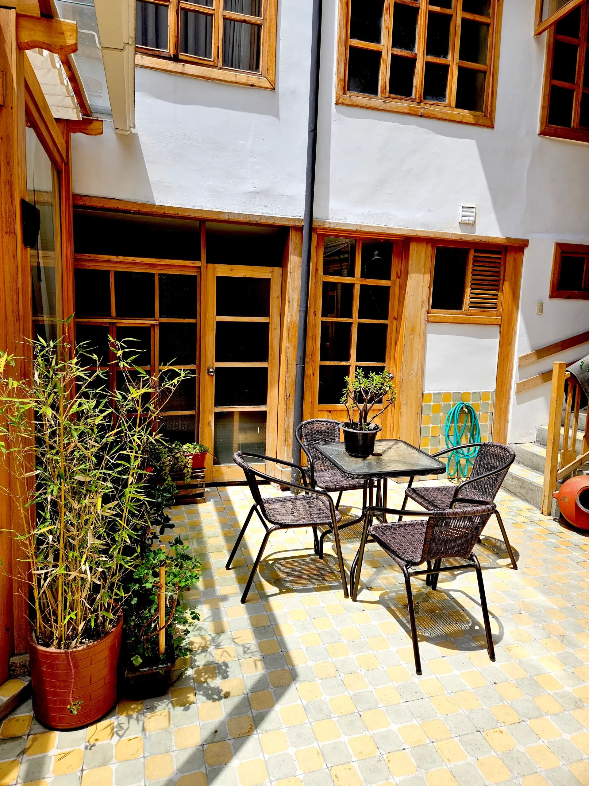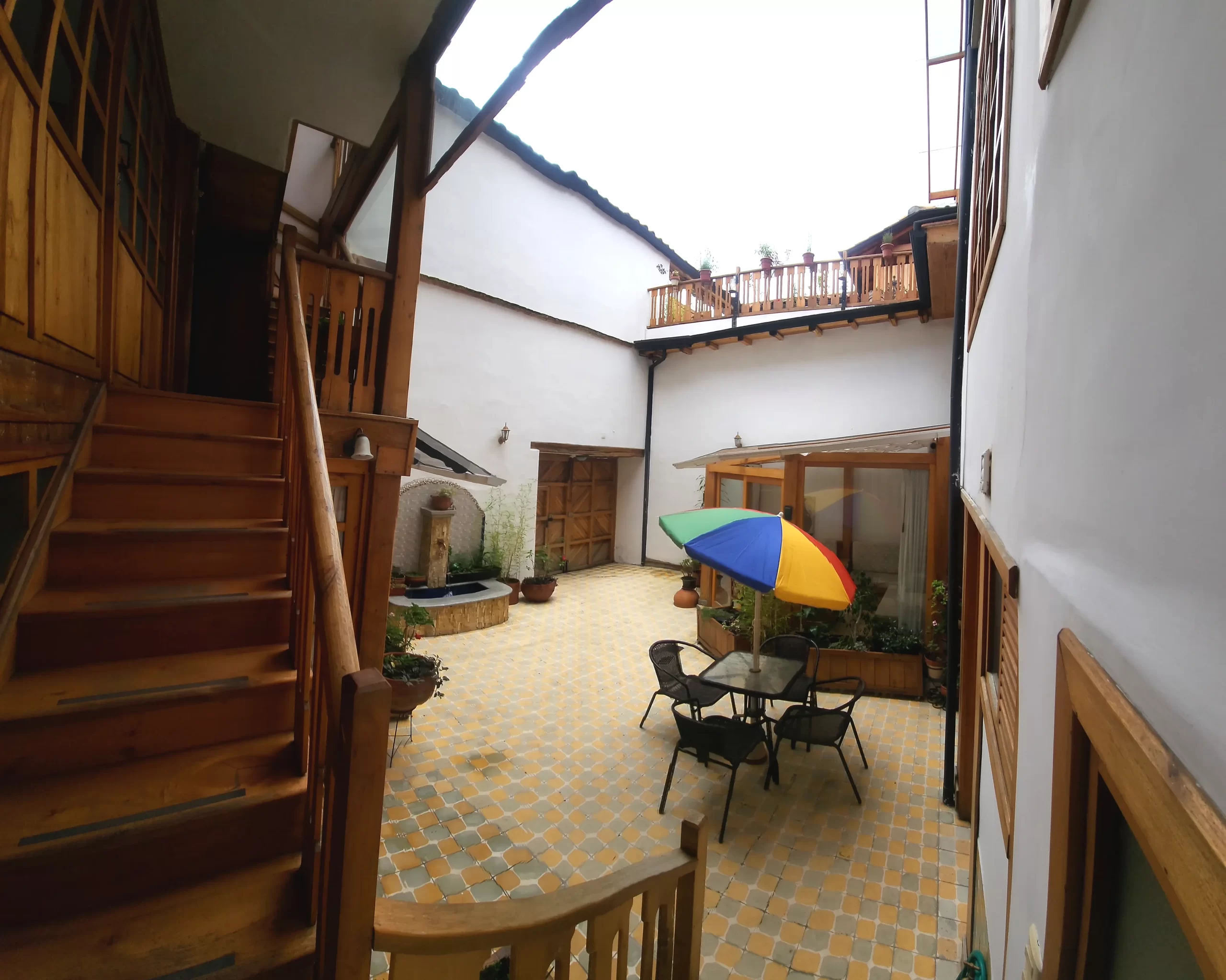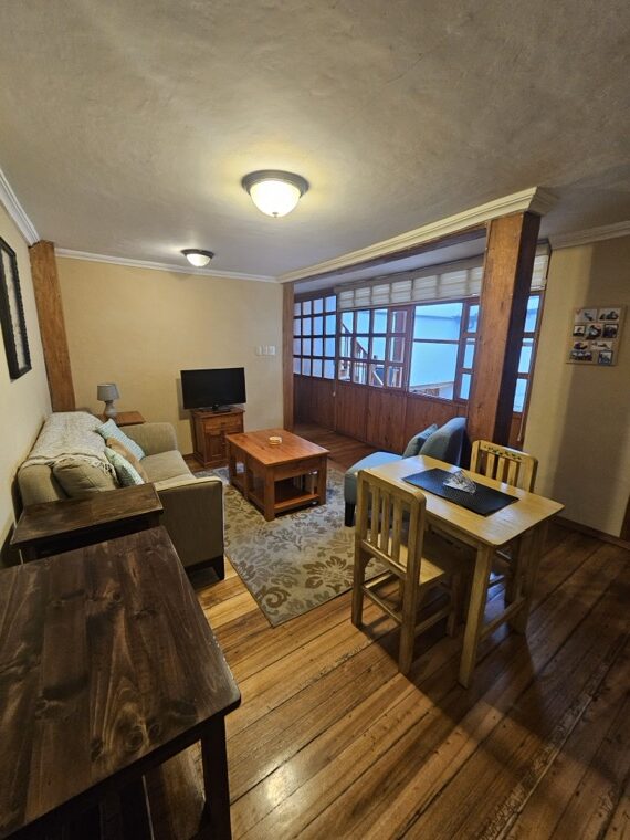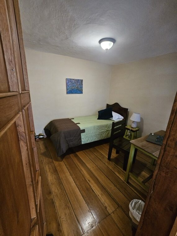 Finding a quiet apartment with office in Cuenca is essential for digital nomads, and the Sofia Apartment offers the perfect balance of workspace and heritage charm. Located on the second level toward the back of the house, its thick adobe walls provide natural insulation from the rhythm of El Centro. This “home away from home” features a spacious primary bedroom and a versatile second room, making it an ideal retreat for a long-term stay with access to our shared courtyard and the glass-enclosed room with electricity and a fireplace for warmth, perfect for working on a computer or just relaxing.